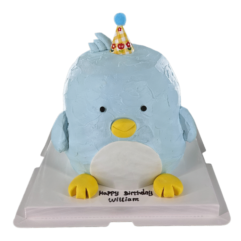 Styled in soft blue tones with charming decorative details, creating a fun and memorable centrepiece.
