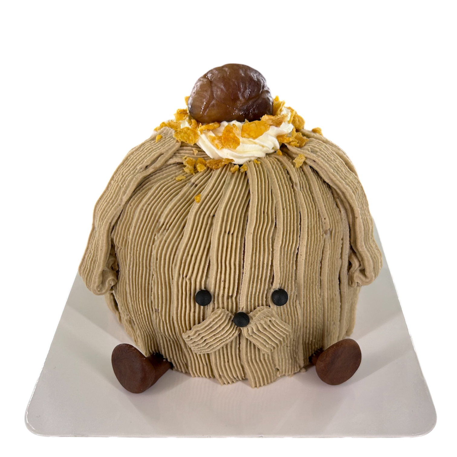 A super cute fresh-cream cake piped with silky chestnut cream to create a soft, fluffy puppy shape.
