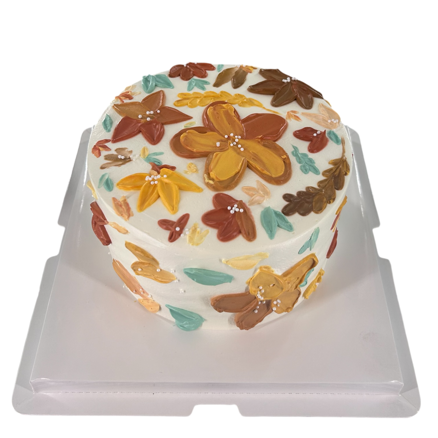 Bright, artistic and full of charm — our Floral Painted Cake features hand-painted buttercream flowers in warm autumn-inspired tones.