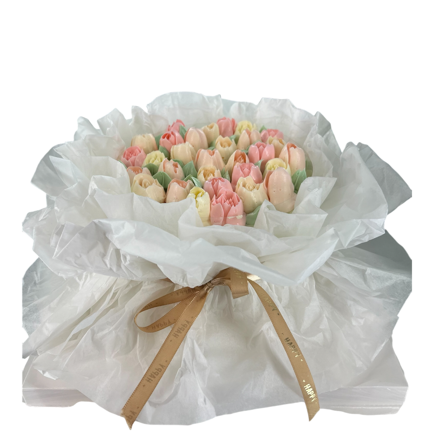 Handcrafted cream arranged like a blooming bouquet, with refined floral details made to elevate any celebration.