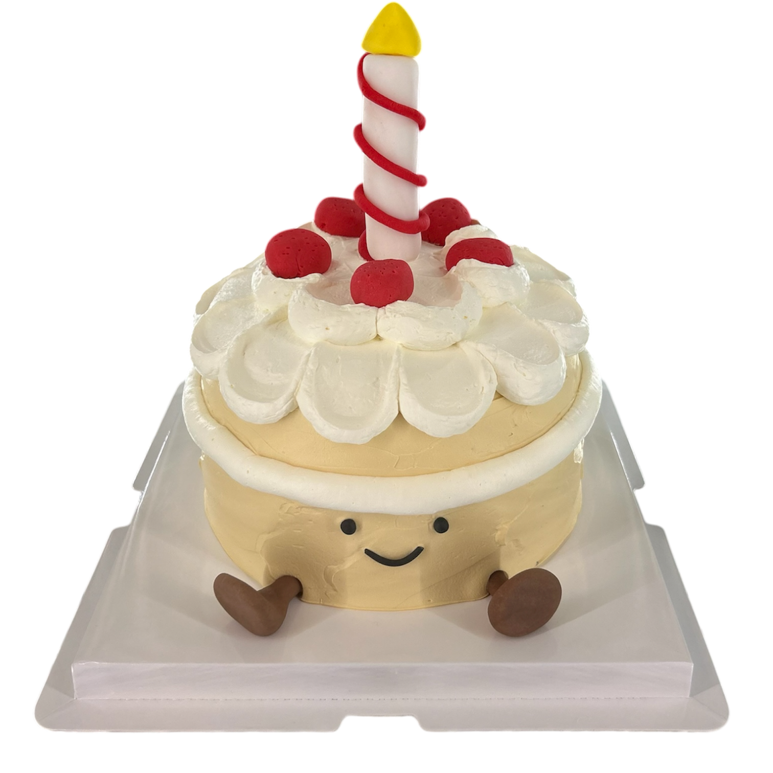 A cute fresh cream cake topped with a playful candle and sweet character details, perfect for bringing extra joy to any birthday celebration.